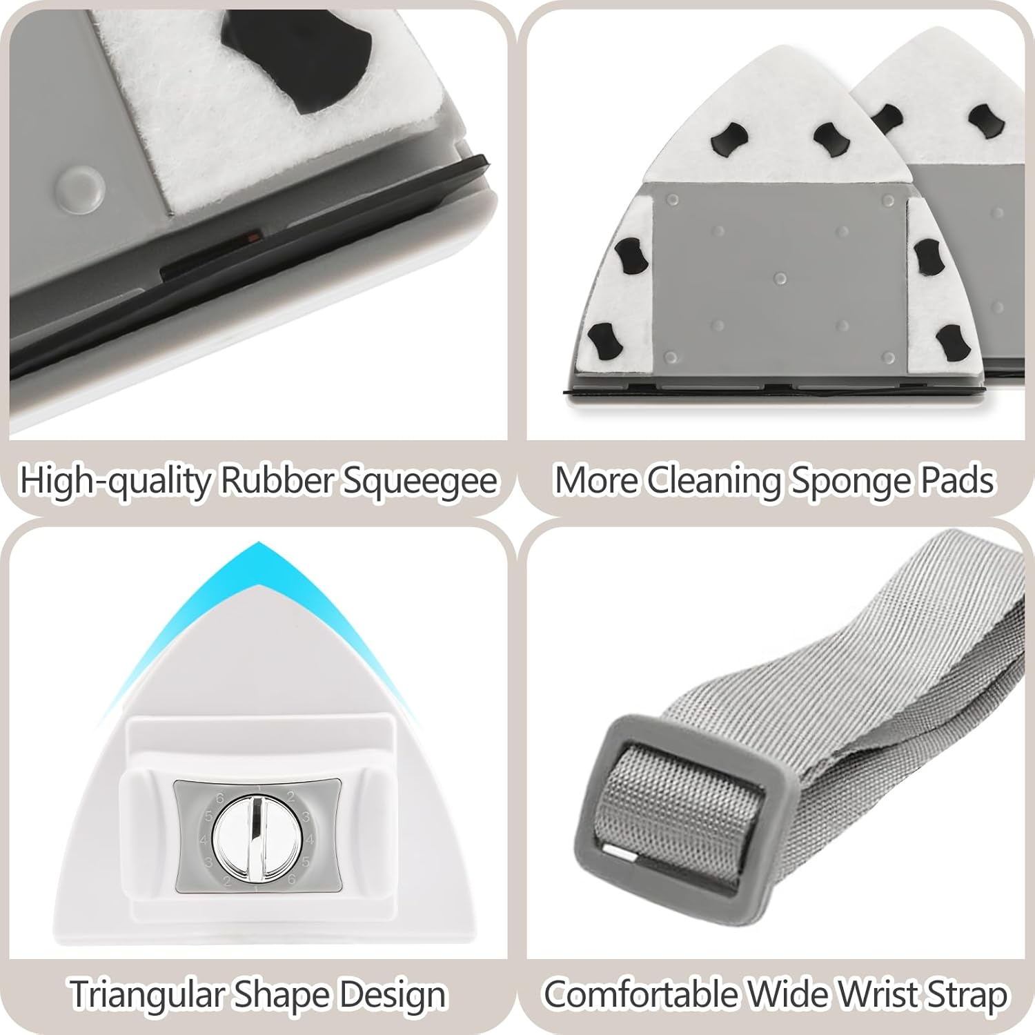 Large & Soft Sponge Cleaning Pads Included: The magnetic glass cleaner is equipped with 6 large sponge pads, which can carry more water to keep the glass moist and ensure smooth gliding, efficient in removing dirt on windows. 3 extra full sets of sponges and 2 extra pieces of rubber blade are supplied together and super easy to replace.